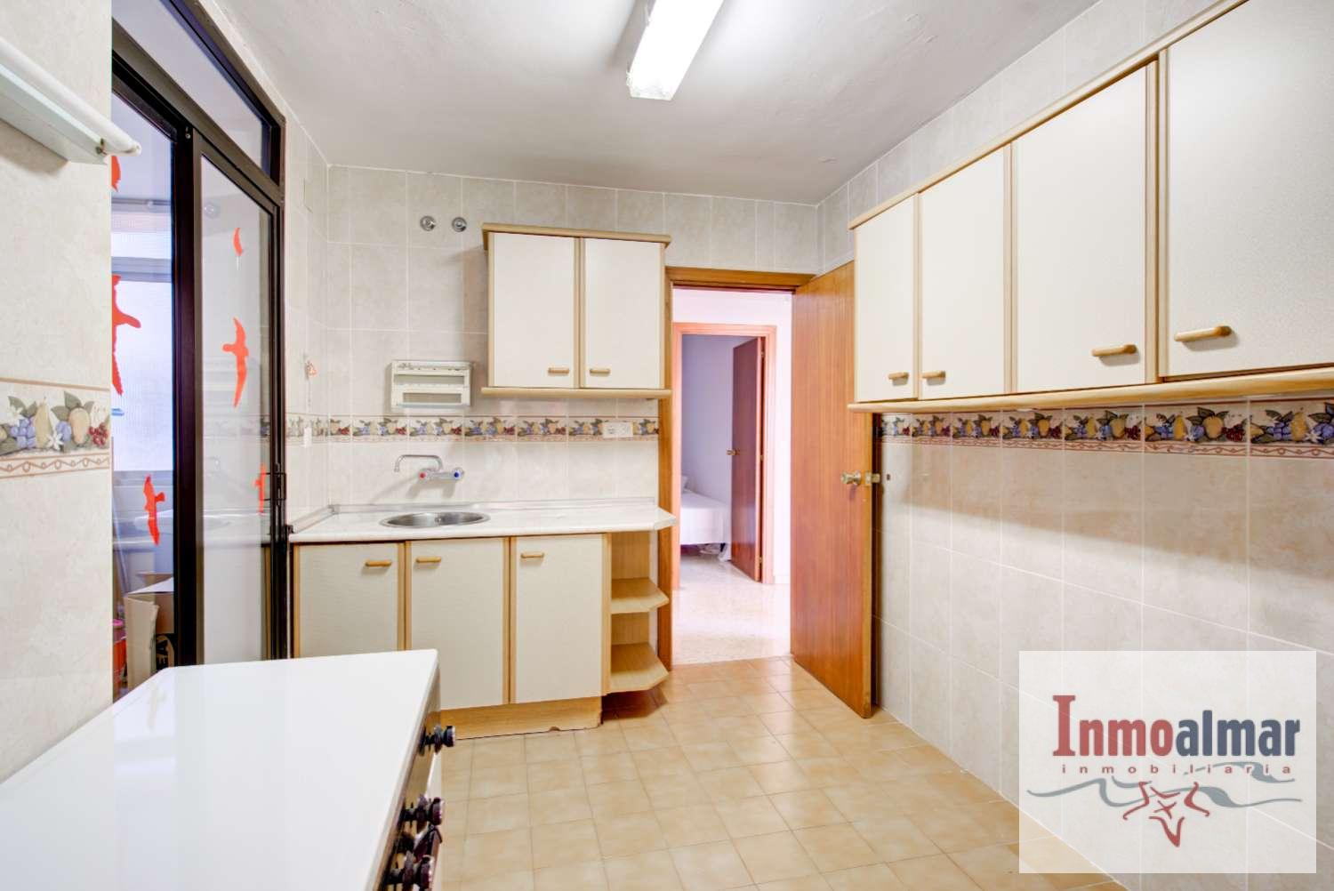 El apartamento necesita una reforma integral, pero ofrece muchísimas posibilidades de redistribución, incluyendo la opción de unir la cocina al salón para crear un espacio amplio y moderno. Se encuentra en un bloque muy bien cuidado, con parking y piscina comunitarios.